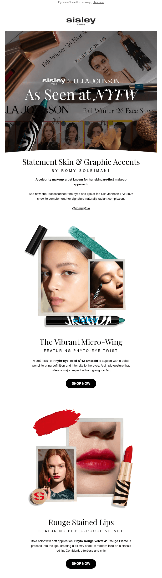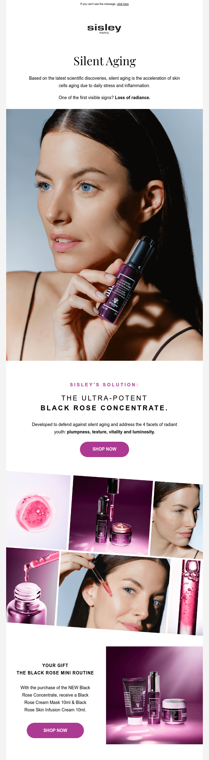 I designed a series of high-performing emails that paired Sisley’s luxury aesthetic with clear results-driven layouts. By focusing on clean visual hierarchy and product benefits, I created a consistent look that made it easier for customers to shop. This approach helped the brand beat its seasonal sales targets while keeping the premium feel our audience expects.